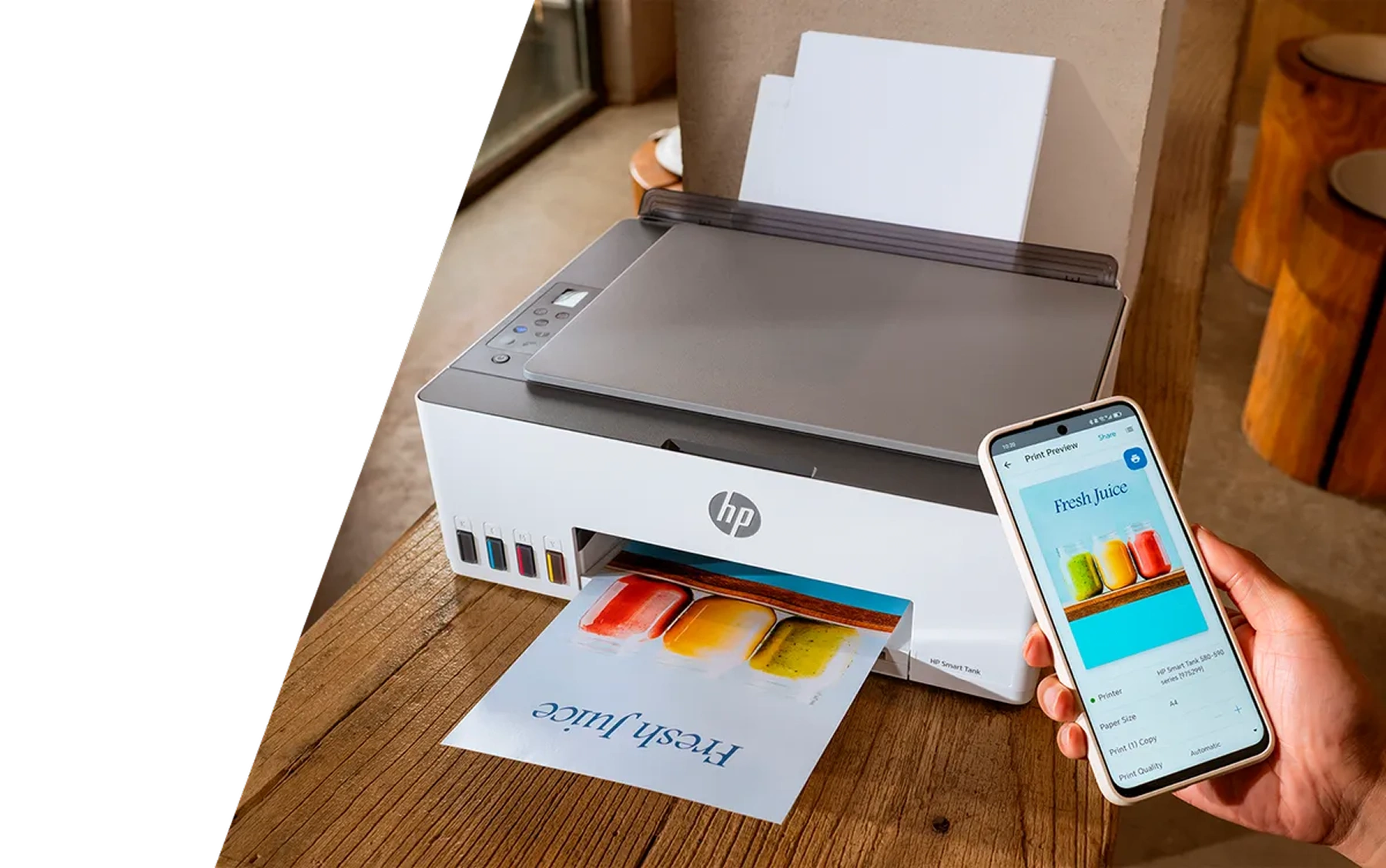 La impresora también cuenta con funciones ecológicas como tecnología HP Auto-On/Auto-Off para ahorro energético y botellas de tinta reciclables codificadas por color para una recarga limpia y sencilla.