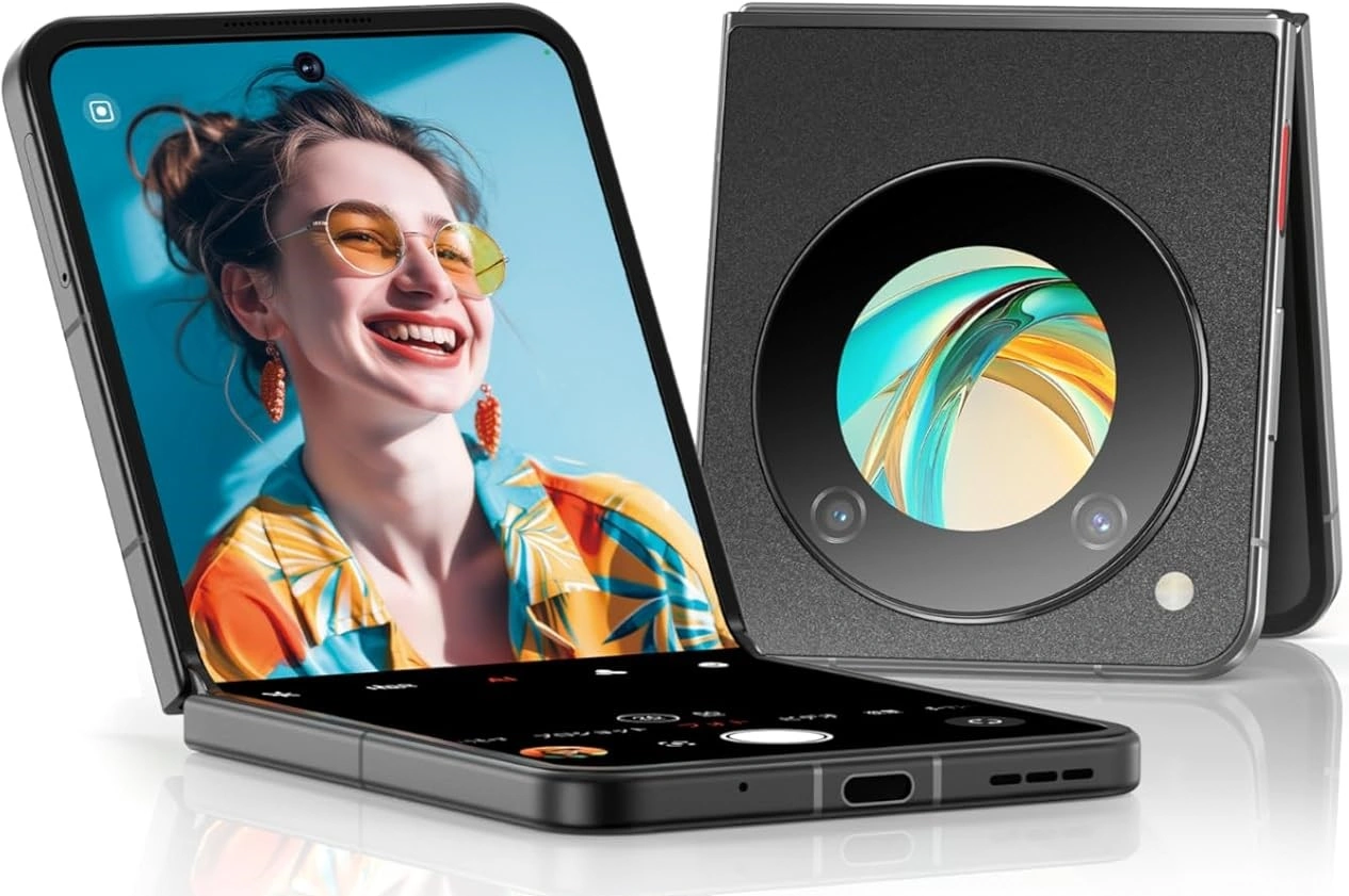 El Nubia Flip 5G combina un diseño estilizado con una pantalla plegable FHD+ de 6.9”. Su tapa exterior muestra un módulo de cámara circular distintivo y un acabado minimalista que transmite modernidad. En la parte frontal, el panel interno ofrece una experiencia visual inmersiva ideal para multitarea y entretenimiento.